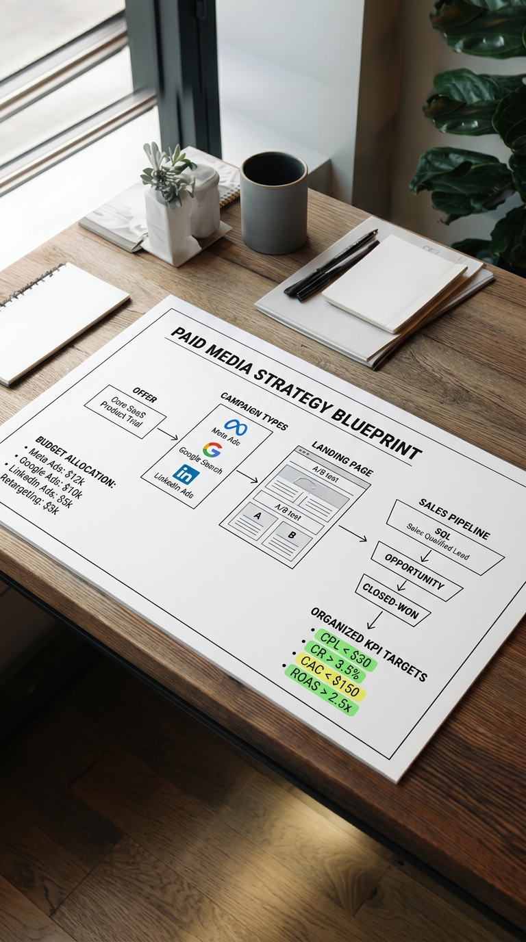 Paid campaigns accelerate growth faster than organic alone. They work best when you have a clear offer, defined sales process, and measurable ROI targets.