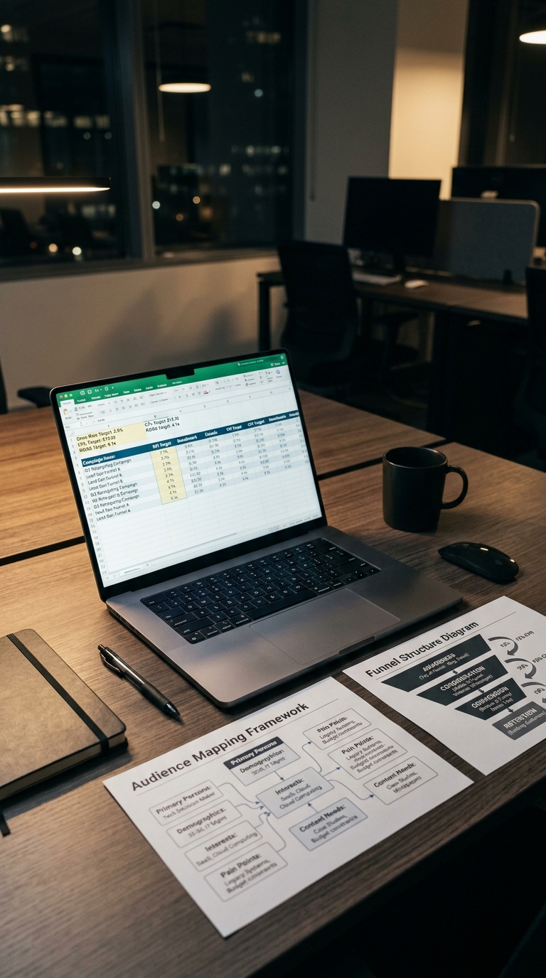 Clarity on audience, offer, funnel, and benchmarks before the first ad runs.